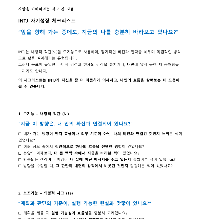 자기성장 로드맵 – INTJ 완벽한 계획 너머 감정의 유연함을 배우는 연습